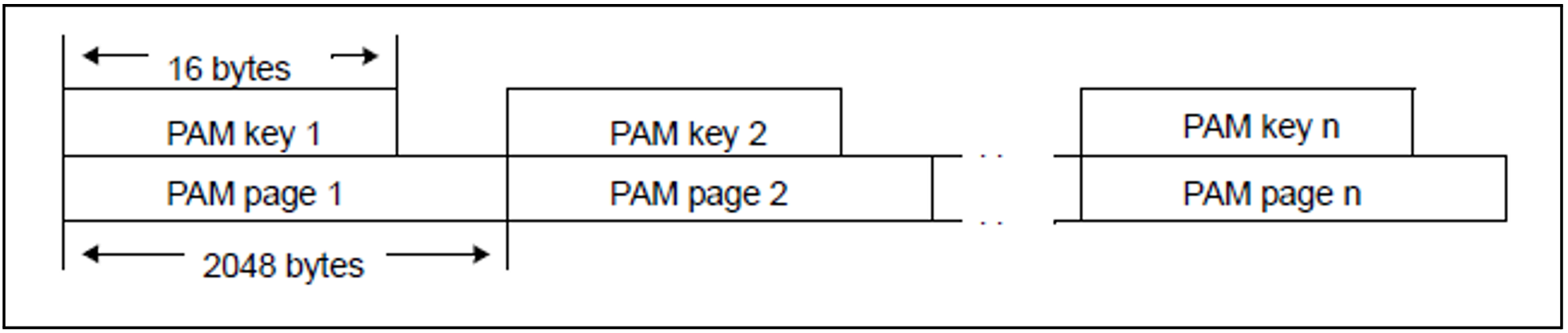 All n * 2048 bytes of the logical block are available for user data, since the DMS management information is stored in the 16-byte PAM key. For SAM files, the PAM key has the following structure: