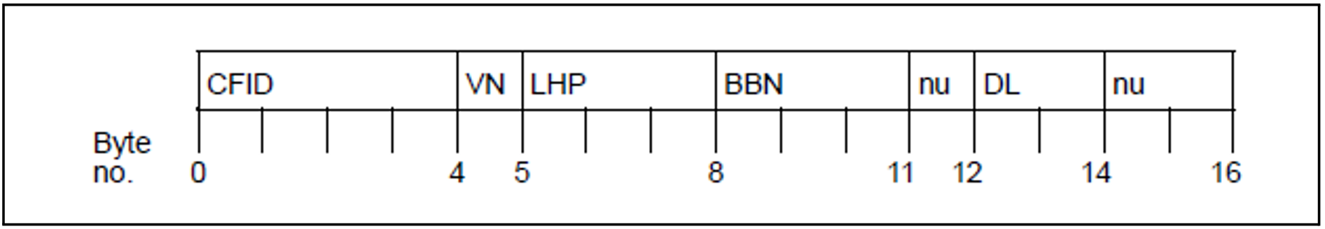 CFID | Coded File IDentification: an identifier which enables DMS to determine, by comparing it with a corresponding CFID in the catalog entry, whether the data in the PAM page belongs to the file or whether the page is reserved (for this file) but does not yet contain data. |