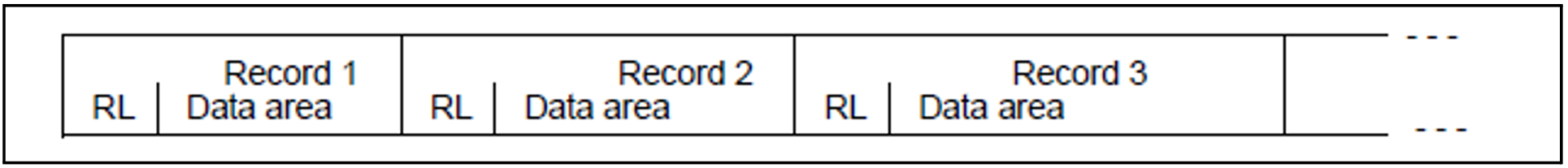 In variable-length records, there is always a 4-byte control field in front of the actual data, and the first two bytes of this field contain, in binary form, the length of the record, including the control field. The other two bytes of the field are reserved.