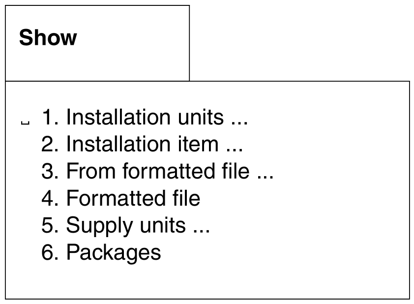 Show: From formatted file: Installation units