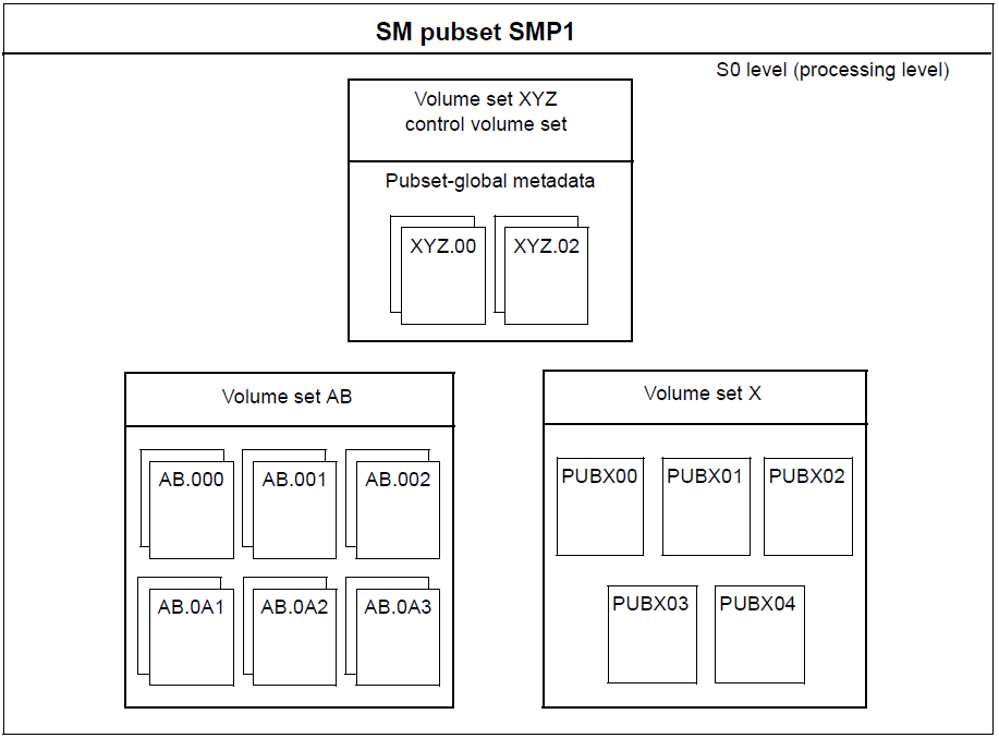 An SM pubset with the catalog ID SMP1 is defined. The volume set with the ID XYZ is designated as the control volume set.