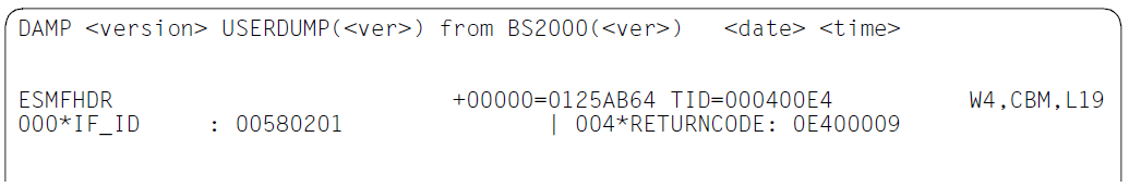 In the symbolic output, X'4F' is used as the column separator character. With certain terminal settings and with certain printer character sets, this character is not represented as the vertical line “|”. This can be remedied with the aid of the user parameter “Column separator (list)” (see "Modification by the user (special window: OPTIONS)").
