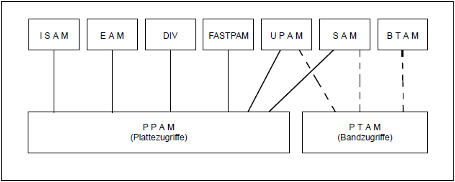 Die zentralen Zugriffsmethoden des BS2000 sind die privilegierte Plattenzugriffsmethode PPAM (Privileged Primary Access Method) und die privilegierte Bandzugriffsmethode PTAM (Privileged Tape Access Method).