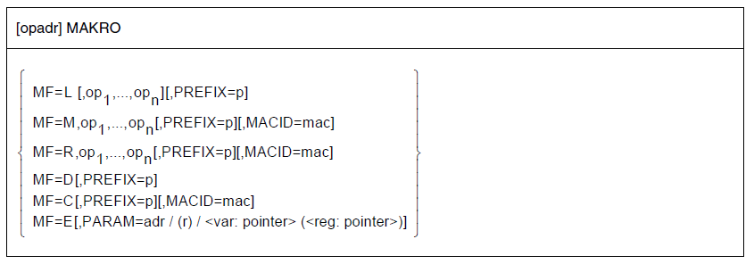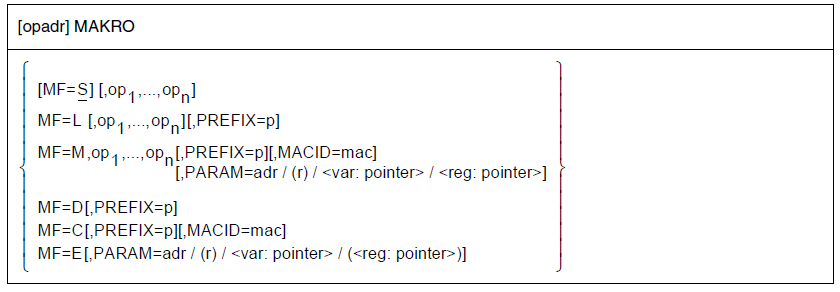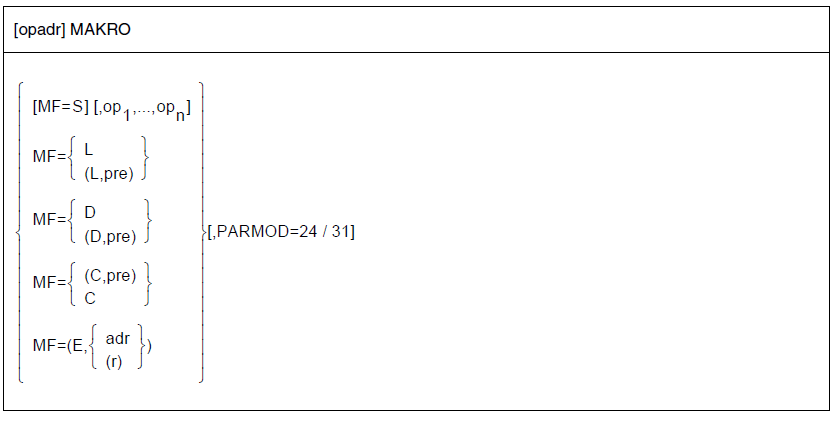 MF-Format 1 nicht erlaubt. Ausnahmen werden beim jeweiligen Makro kenntlich gemacht. (Siehe auch Operandenbeschreibung zu MF=S, "S-Typ-Makroaufrufe")