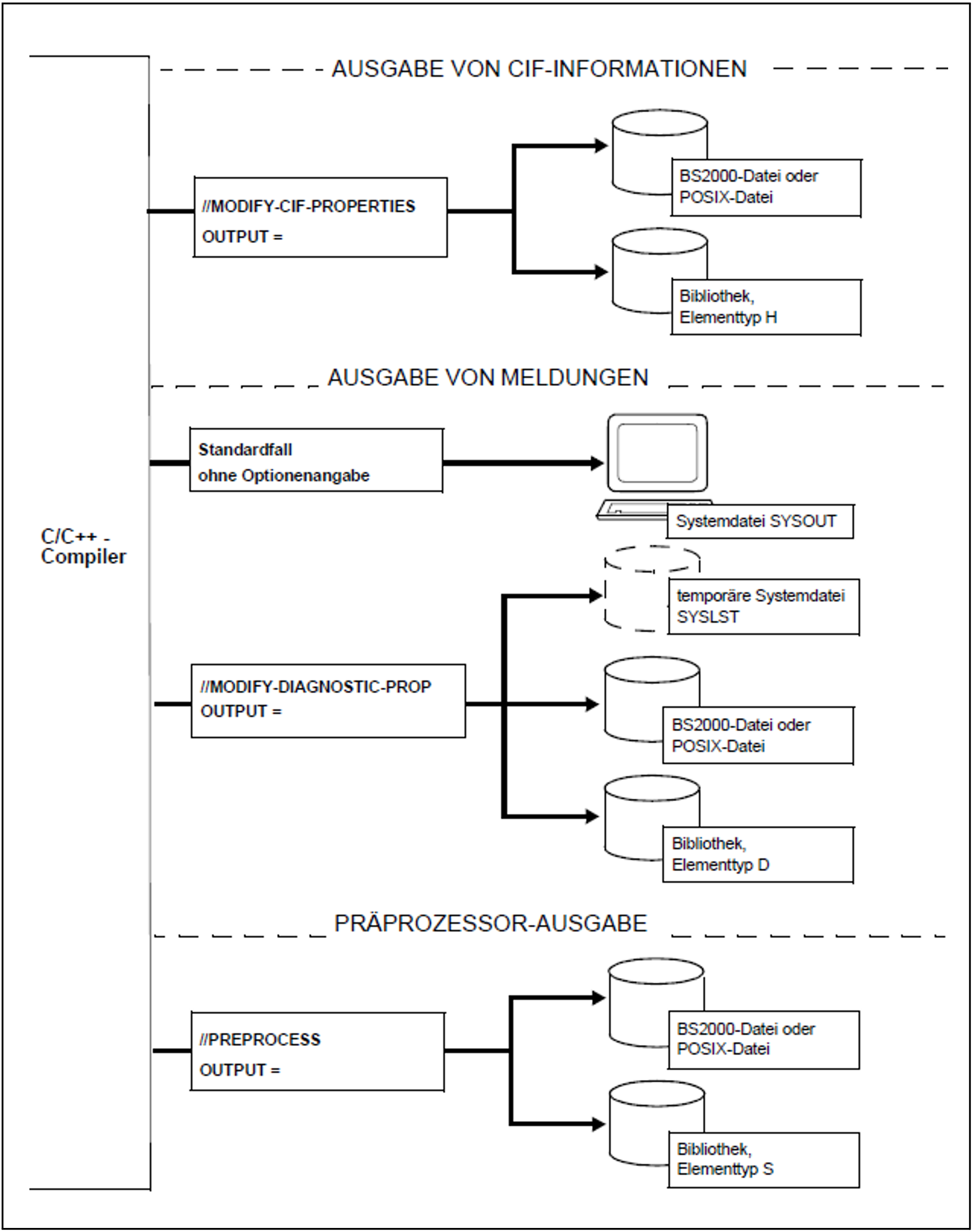 Eingabequellen und Ausgabeziele des Compilers