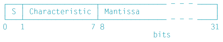 Characteristic = exponent + 32An internal single-precision floating-point item permits representation with a precision of seven decimal digits.