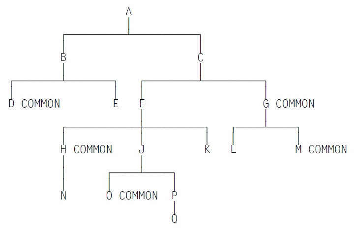 The COMMON clause causes the program to have the COMMON attribute. Such a program can be called not only by the directly superordinate program but also by its "sibling programs" and their "descendants".