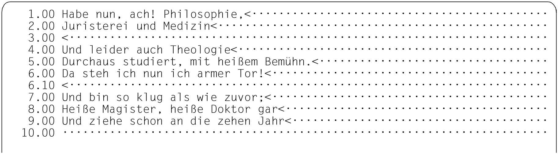 Die Zeile 3.00 wurde vor die Zeile 7.00 kopiert, nicht jedoch hinter die Zeile 8.00. Stattdessen gibt der EDT eine Fehlermeldung aus.