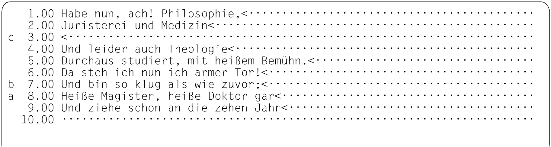 Die Zeile 3.00 soll vor die Zeile 7.00 und hinter die Zeile 8.00 kopiert werden. Dazu wird in Zeile 3.00 die Kurzanweisung C, in Zeile 7.00 die Kurzanweisung B und in Zeile 8.00 die Kurzanweisung A eingegeben.