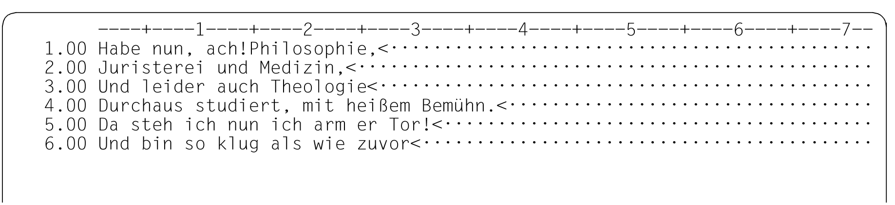 Entsprechend den unter (4) definierten Voreinstellwerten wird die Spaltenzähleranzeige ausgegeben. Mit @HALT wird der F-Modus-Bildschirmdialog wieder beendet und die mit @DIALOG unterbrochene Prozedur fortgesetzt.