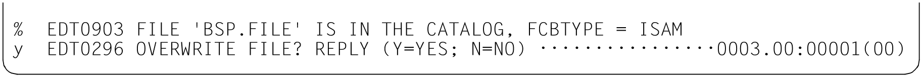 Für die folgenden Anweisungen @GET und @SAVE wird der Dateiname BSP.FILE mit der Versionsnummer * voreingestellt. Anschließend wird mit @GET die Datei BSP.FILE eingelesen.