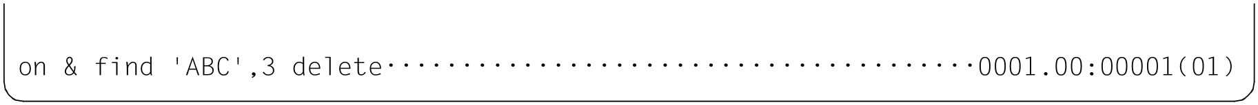Dieses Format der @ON-Anweisung bewirkt, dass die Zeile bzw. der Inhalt einer Zeichenfolgevariablen, die den Suchbegriff enthalten, gelöscht wird. Zeichenfolgevariablen werden in diesem Falle wieder mit einem Leerzeichen initialisiert und erhalten den Zeichensatz EDF041.