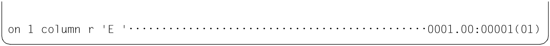 Dieses Format der @ON-Anweisung bewirkt, dass der EDT bei der Suche in Arbeitsdateien die Zeilennummern und die Nummern der Spalten ausgibt, in denen die Trefferzeichenfolgen beginnen. Die Ausgabe erfolgt im Dialogbetrieb nach SYSOUT und im Stapelbetrieb nach SYSLST. Wird in der Anweisung kein Suchbegriff spezifiziert, gibt der EDT die Zeilennummern und die Länge jeder Zeile des angegebenen Zeilenbereiches aus.