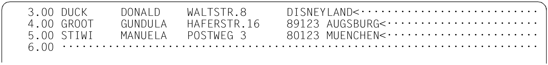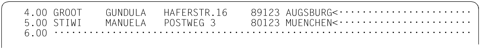 Bezieht sich die Anweisung auf eine real durch @OPEN (Format 2) geöffnete Datei, erfolgt kein Markieren. Es wird lediglich im F-Modus das Arbeitsfenster auf den ersten Treffersatz positioniert. Die explizite Angabe von MARK bzw. MARK m wird mit der Fehlermeldung EDT4935 abgewiesen.