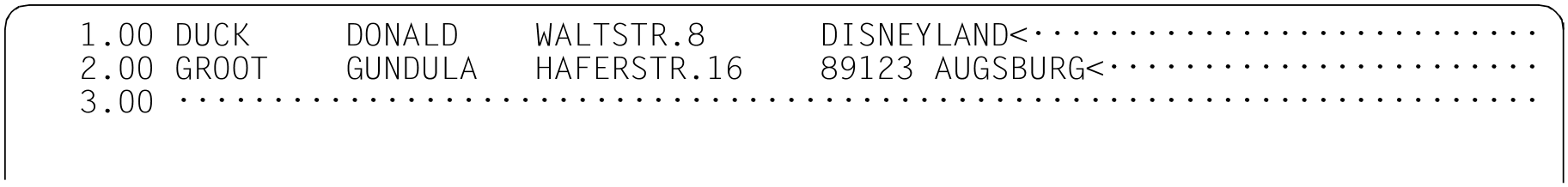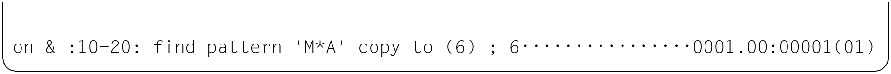 Mit diesem Format der @ON-Anweisung werden die Trefferzeilen der zu durchsuchenden Zeilenbereiche in die angegebene Arbeitsdatei kopiert.