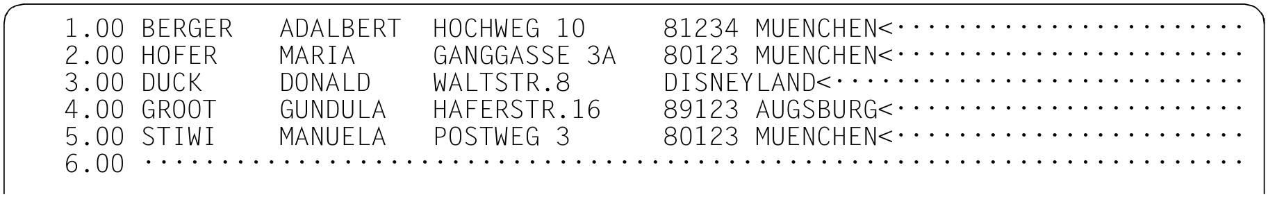 Alle Sätze der Personen, deren Vornamen mit M beginnen und mit A enden werden in die Arbeitsdatei 6 kopiert. Anschließend wird in die Arbeitsdatei 6 verzweigt.