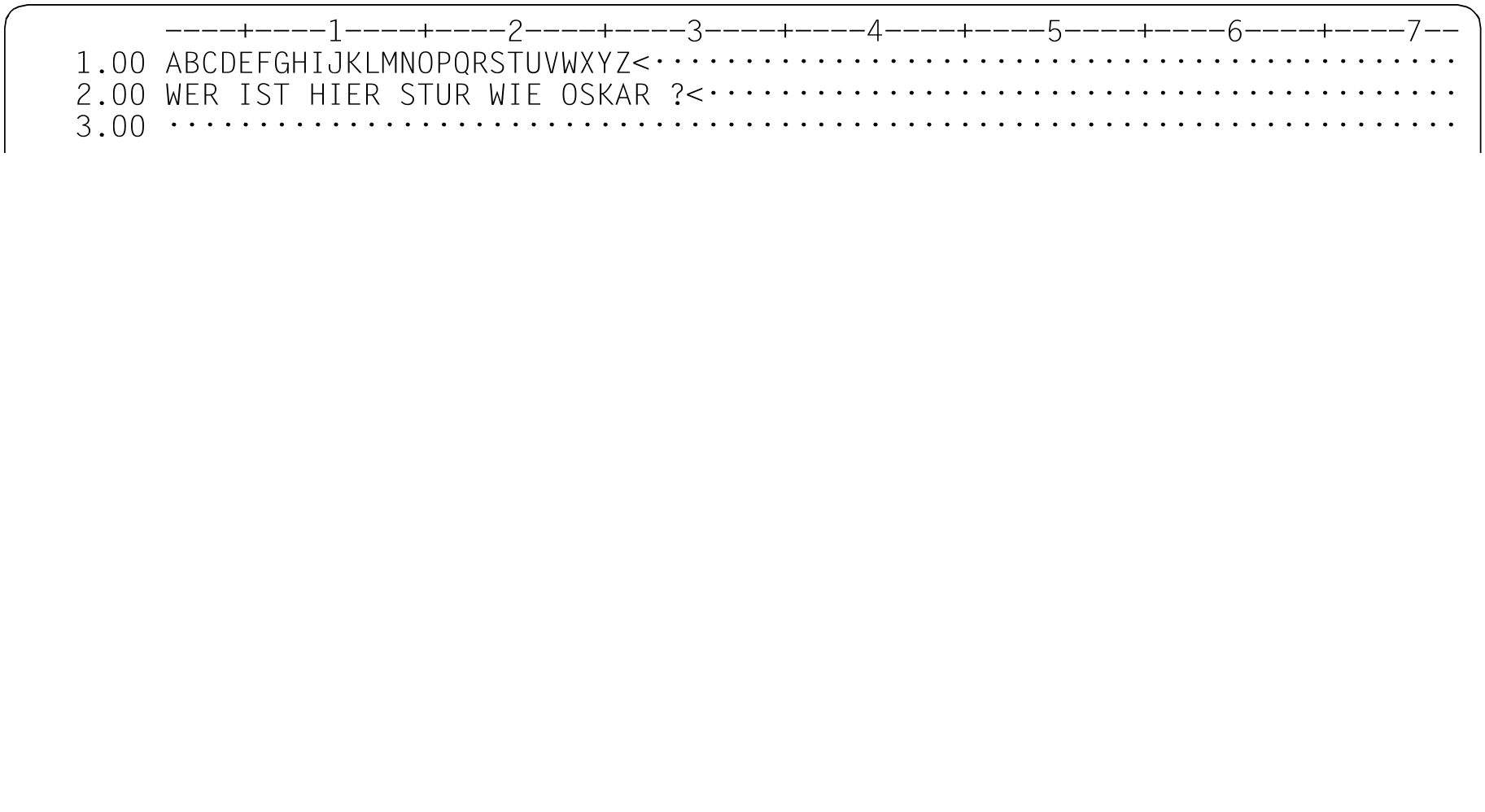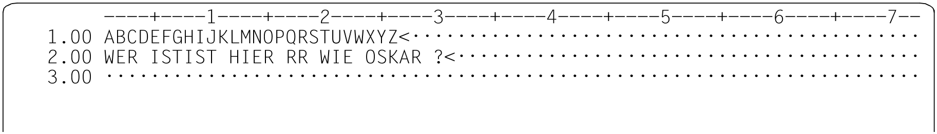 Mit dem ersten @ON soll in Zeile 2 nach dem dritten Auftreten des Zeichens R gesucht werden. Dieses R soll durch die Zeichenfolge aus Zeile 1 in den Spalten 19 bis 21, d.h. STU ersetzt werden.