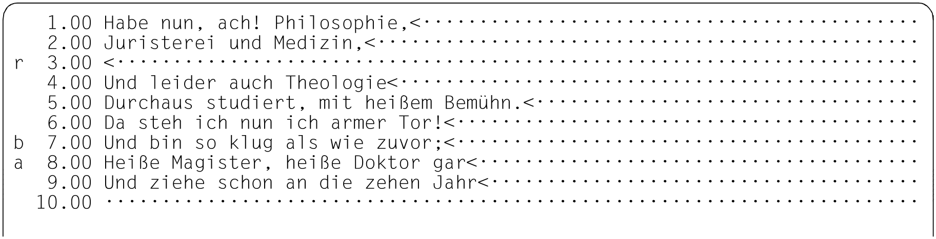 Sobald eine der Kurzanweisungen A, B oder O eingegeben wurde, wird der Kopiervorgang ausgeführt, d.h. die Sätze werden an der entsprechenden Stelle eingefügt. Im Gegensatz zu den Kurzanweisungen C und M wird bei R der Inhalt des Kopierpuffers anschließend nicht gelöscht, sondern steht für weitere Kopiervorgänge zur Verfügung.