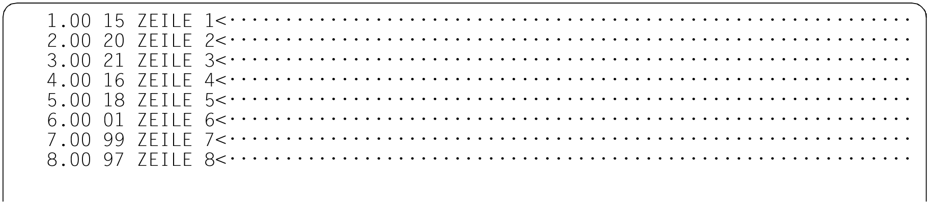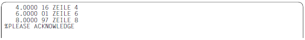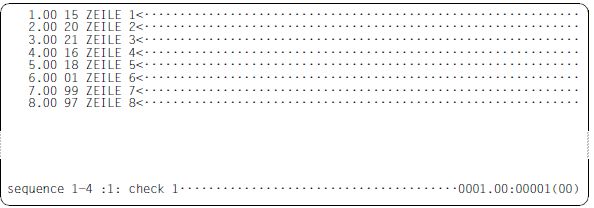 Der EDT prüft, ob die ermittelten Dualzahlen eine aufsteigende Folge bilden. Er gibt alle Zeilen aus, in denen er eine Dualzahl ermittelt, die gleich oder kleiner ist, als die aus der vorhergehenden Zeile. Im Dialogbetrieb erfolgt die Ausgabe nach SYSOUT, im Stapelbetrieb nach SYSLST.