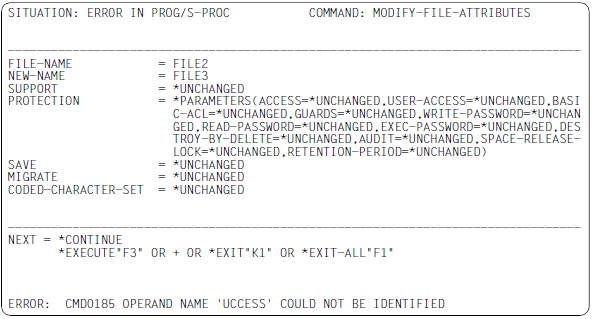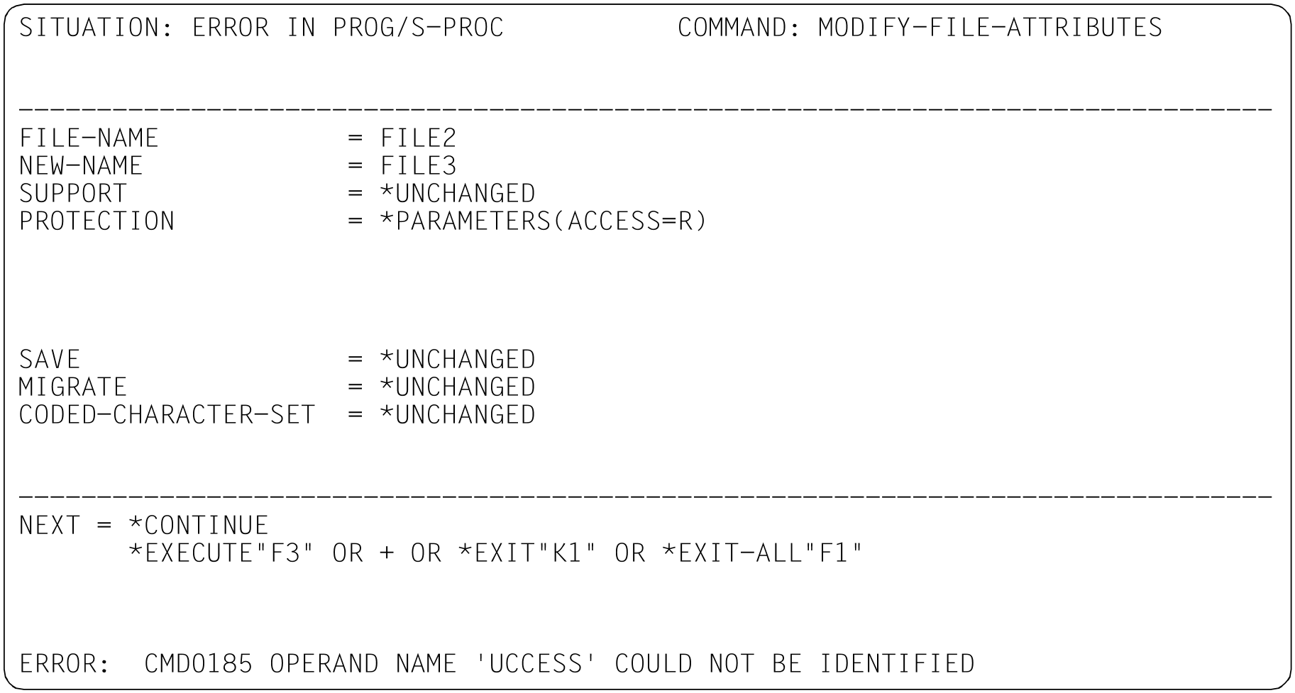 Ist die SDF-Option GUIDANCE=MIN|MED|MAX eingestellt, wird bei einer fehlerhaften SDF-Syntax in den geführten Korrektur-Dialog von SDF übergegangen.