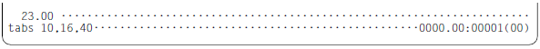 Mit dem Format 1 der @TABS-Anweisung können für das Positionieren mit dem Hardwaretabulator Tabulatorpositionen definiert und ihre aktuellen Werte ausgegeben werden. Der Hardwaretabulator wirkt nur im F-Modus.