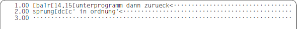 Überzählige Tabulatorzeichen in einer Zeile sind bei der Positionier-Strategie gefährlich. Kommt es zur erneuten Tabulatorexpansion, z.B. durch eine Korrektur in der Zeile im F-Modus, werden diese plötzlich wirksam, meist auf nicht erwünschte Weise.