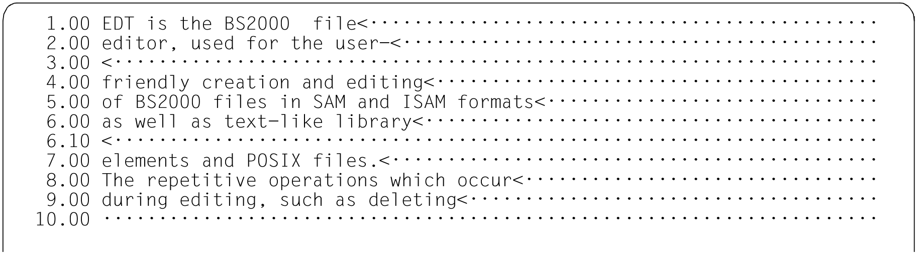 Line 3.00 has been copied to a position before line 7.00 but not after line 8.00. Instead, EDT issues an error message.
