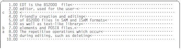 Line 3.00 is to be copied to a position before line 7.00 and after line 8.00. This is achieved by entering statement code C in line 3.00, statement code B in line 7.00 and statement code A in line 8.00.