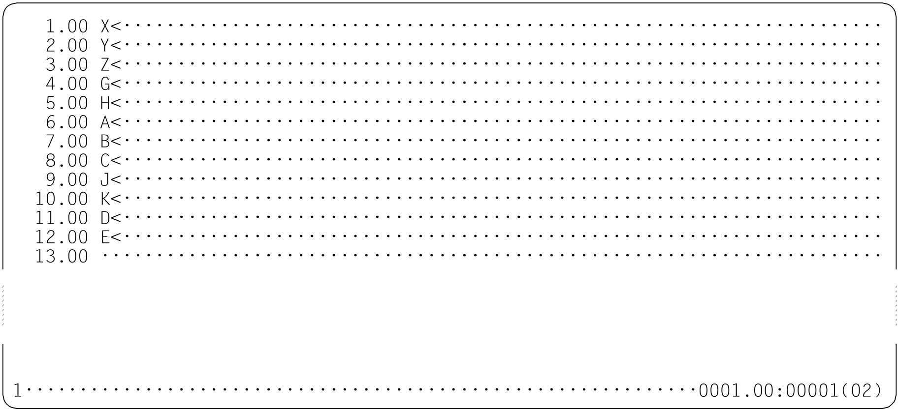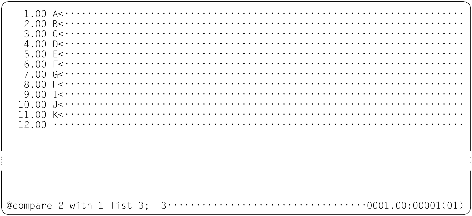In the case of lines with the same content, the identified line numbers are output in the form 0001.00=0006.00. If a number of consecutive records are identical (range of identical records) then only the first and last pairs of line numbers in the range are output (for further details, see the example).