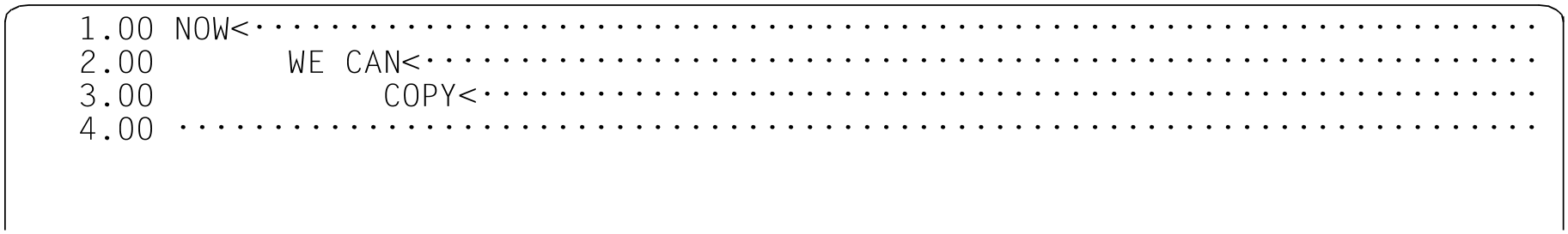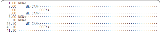 The @COPY statement can be used to duplicate line ranges one or more times if the send and receive areas overlap. In the example below, the first line is to be duplicated.