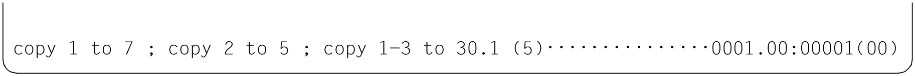 The three @COPY statements are intended to copy line 1 to line 7, line 2 to line 5 and line range from 1 to 3 to the line range starting at line 30.1 with the explicit increment 5.