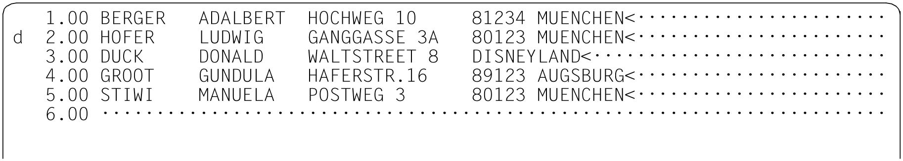 The line 2.00 is to be deleted. This is achieved by specifying D in the statement code column.