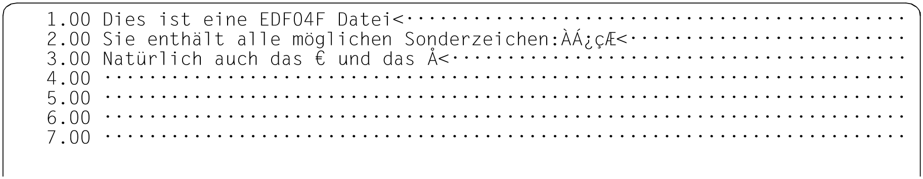 Dies ist eine EDF04F Datei. Sie enthält alle möglichen Sonderzeichen: ÀÁ¿çÆ. Natürlich auch das € und das Å.