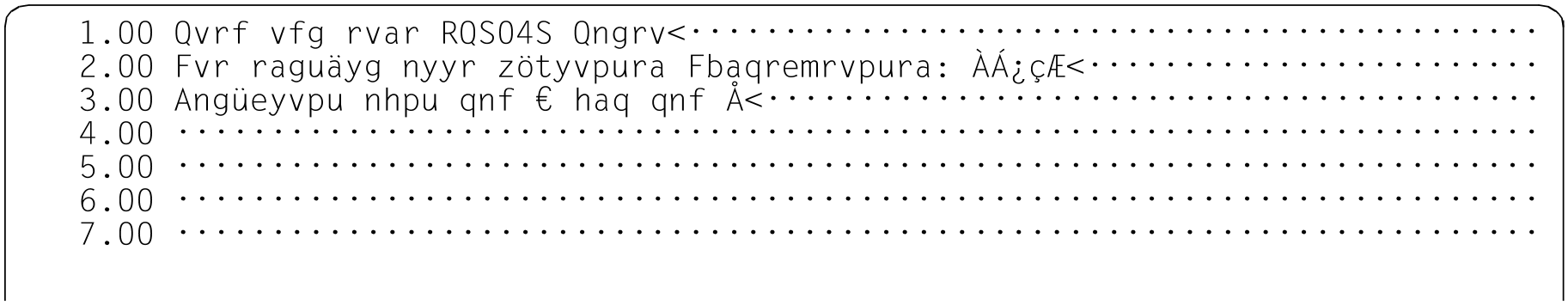 Let us assume that the file to be processed by this example program EDT.TEST4 has the CCS EDF04F and resembles the following: