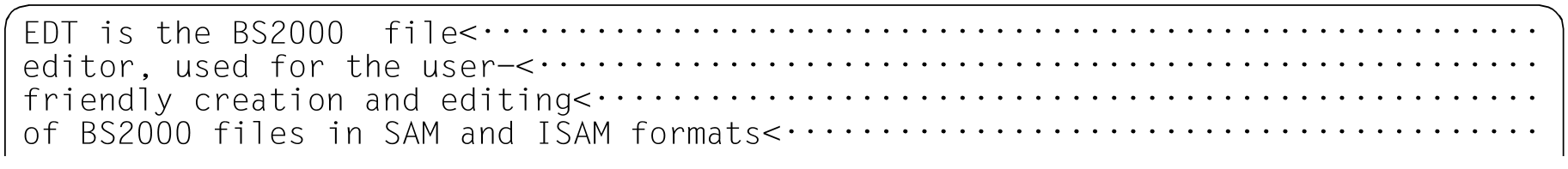 If the line number display is activated in F mode by specifying @INDEX LONG, then, depending on the employed terminal and the way it has been set with the @VDT statement (70 or 122 characters per line), the 8 digit line number display is output with a decimal point and a protected blank for the visual separation of the line contents.