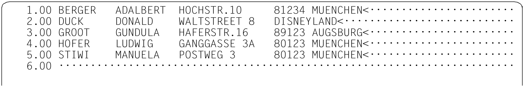 The column number as of which the records are displayed in the data window is output in the status display in the work window.