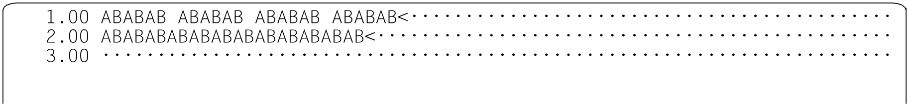 In line 2, the search term is found as a hit for the first time starting in column 1, for the