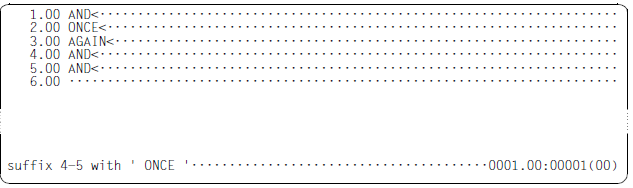 The string ONCE is appended to lines 4 and 5.