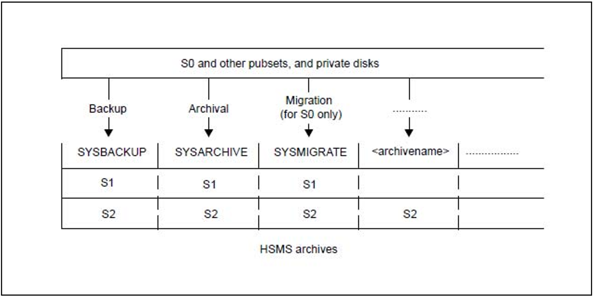 All users can use these system archives for any of the HSMS basic functions. They are addressable under the following symbolic names: