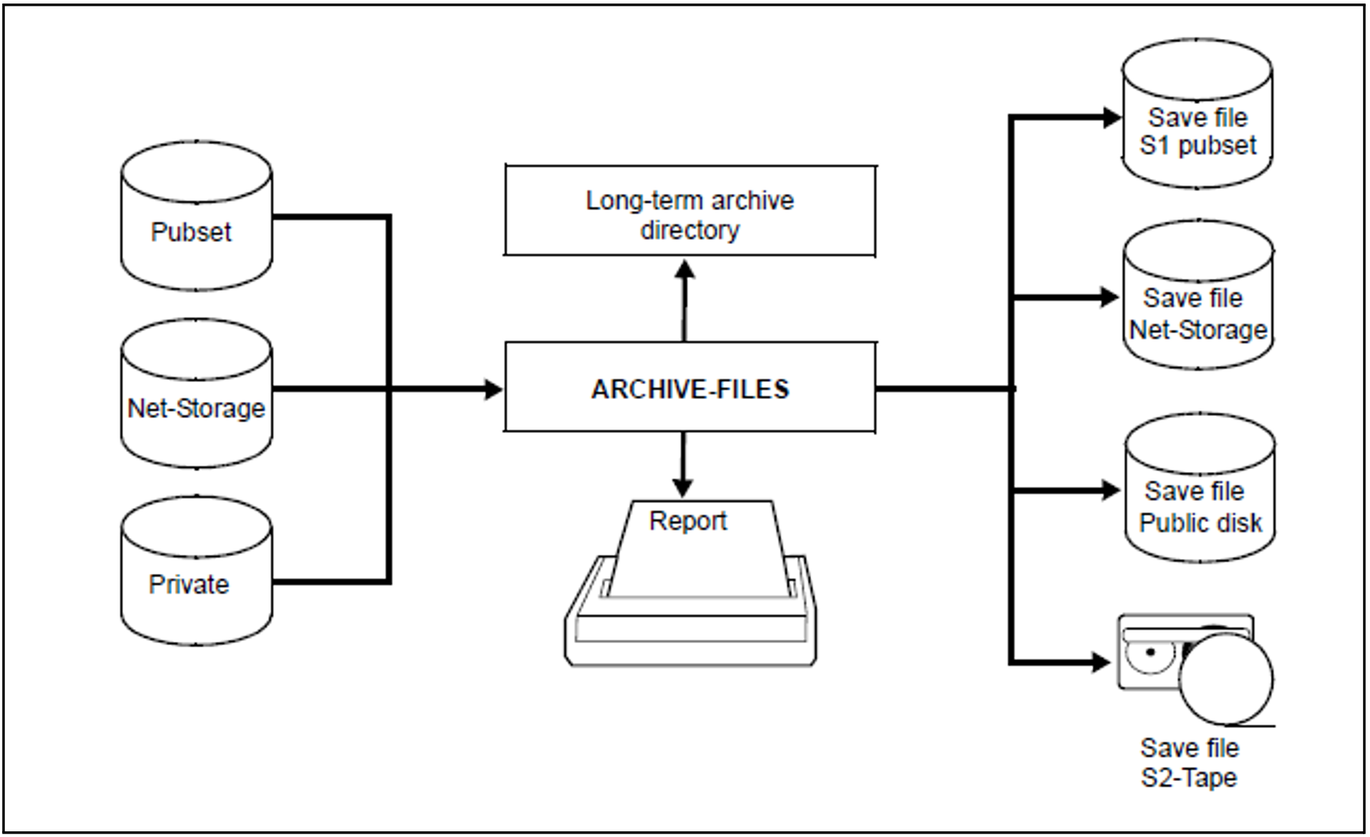 BS2000 files are archived by means of the HSMS statement ARCHIVE-FILES.