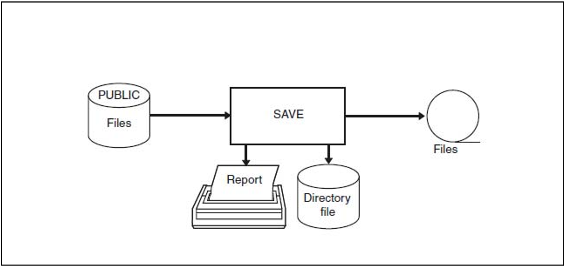 Saving files with a directory file from a public volume to magnetic tape or MT cartridge.