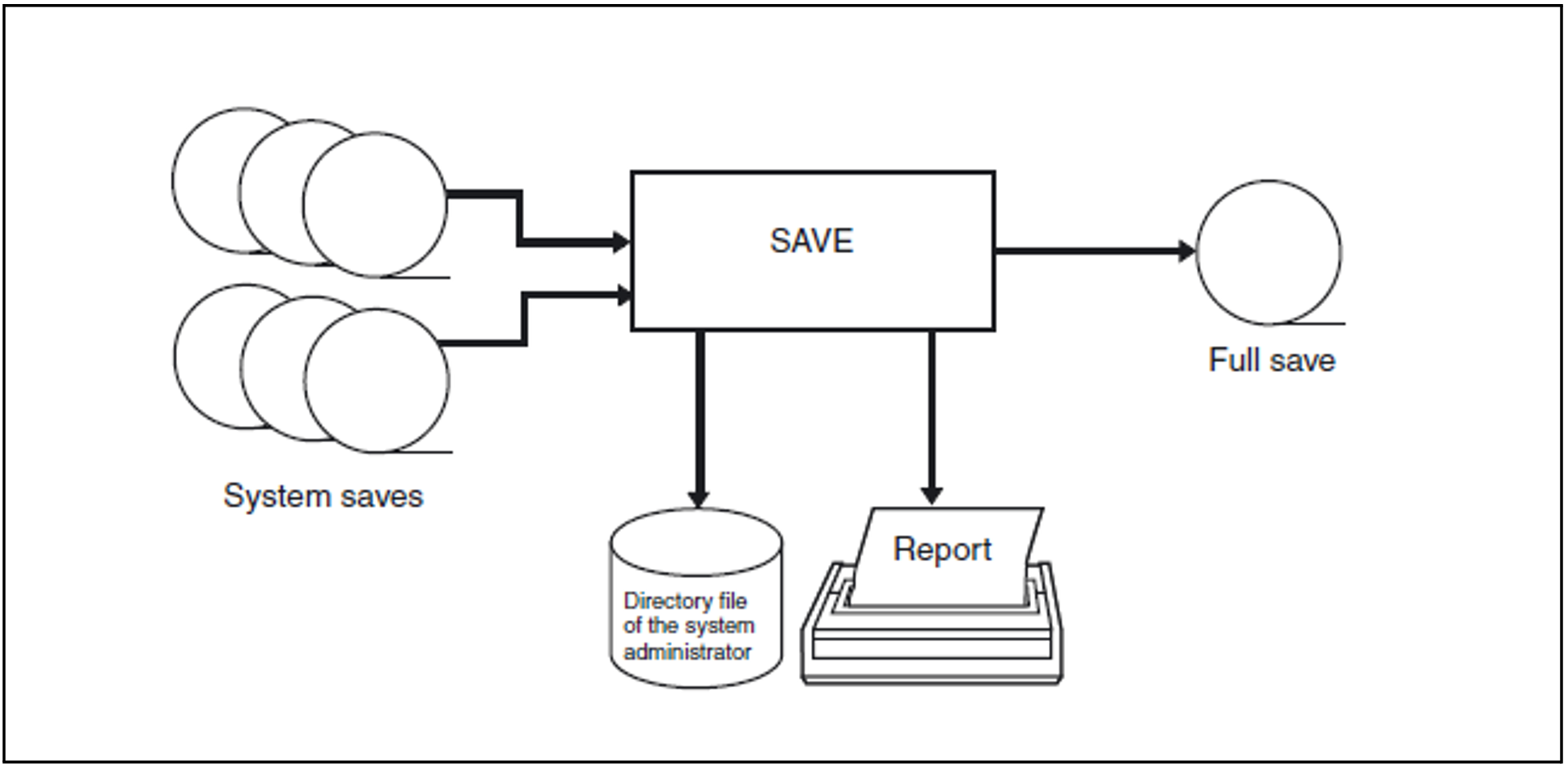 Creating a complete current system save with a directory file from a previous full save ("Example 15: Full save") and if necessary several incremental saves ("Example 16: Incremental save").
