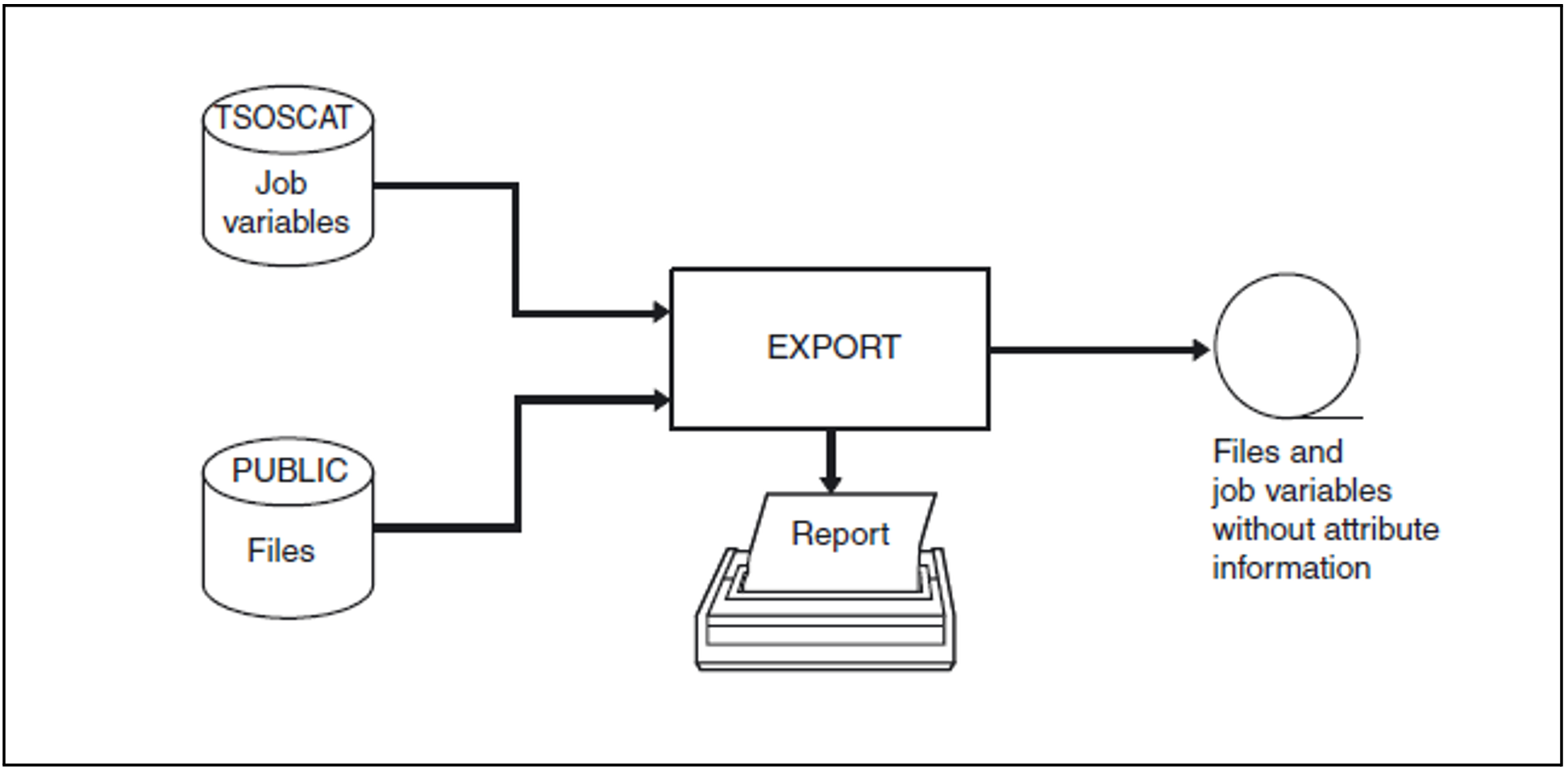 Exporting files and job variables from your own ID and from a foreign user ID to magnetic tape or MT cartridge.