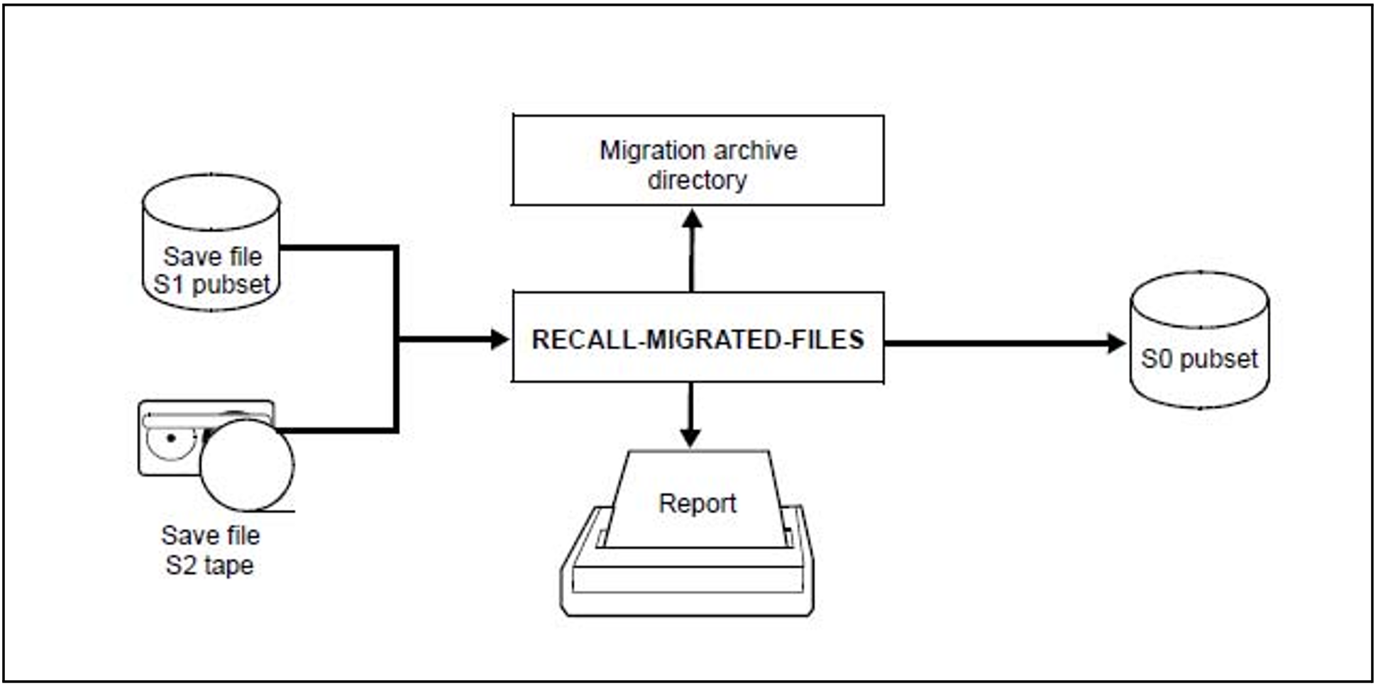 Via the FROM-STORAGE operand, the HSMS administrator can specify the storage level from which he or she wishes to recall the files. If the operand is omitted, the files are recalled from the most recent save file in the appropriate migration archive, regardless of the storage level involved (even if it is a copy).