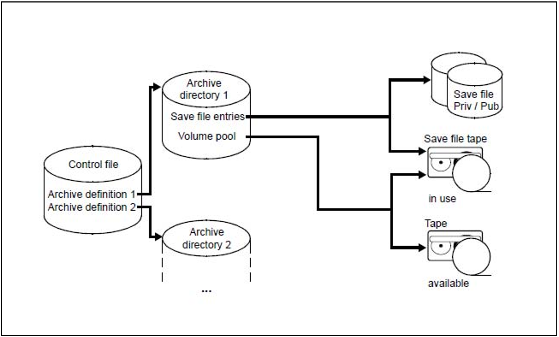 the archive directory used for managing the files, job variables and volumes saved in this archive (implemented as an ARCHIVE directory file)