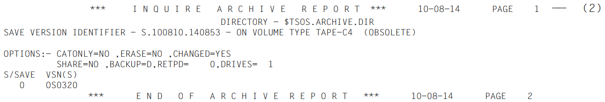 (1) | ARCHIVE is to output all the information on the obsolete save versions from the directory file |