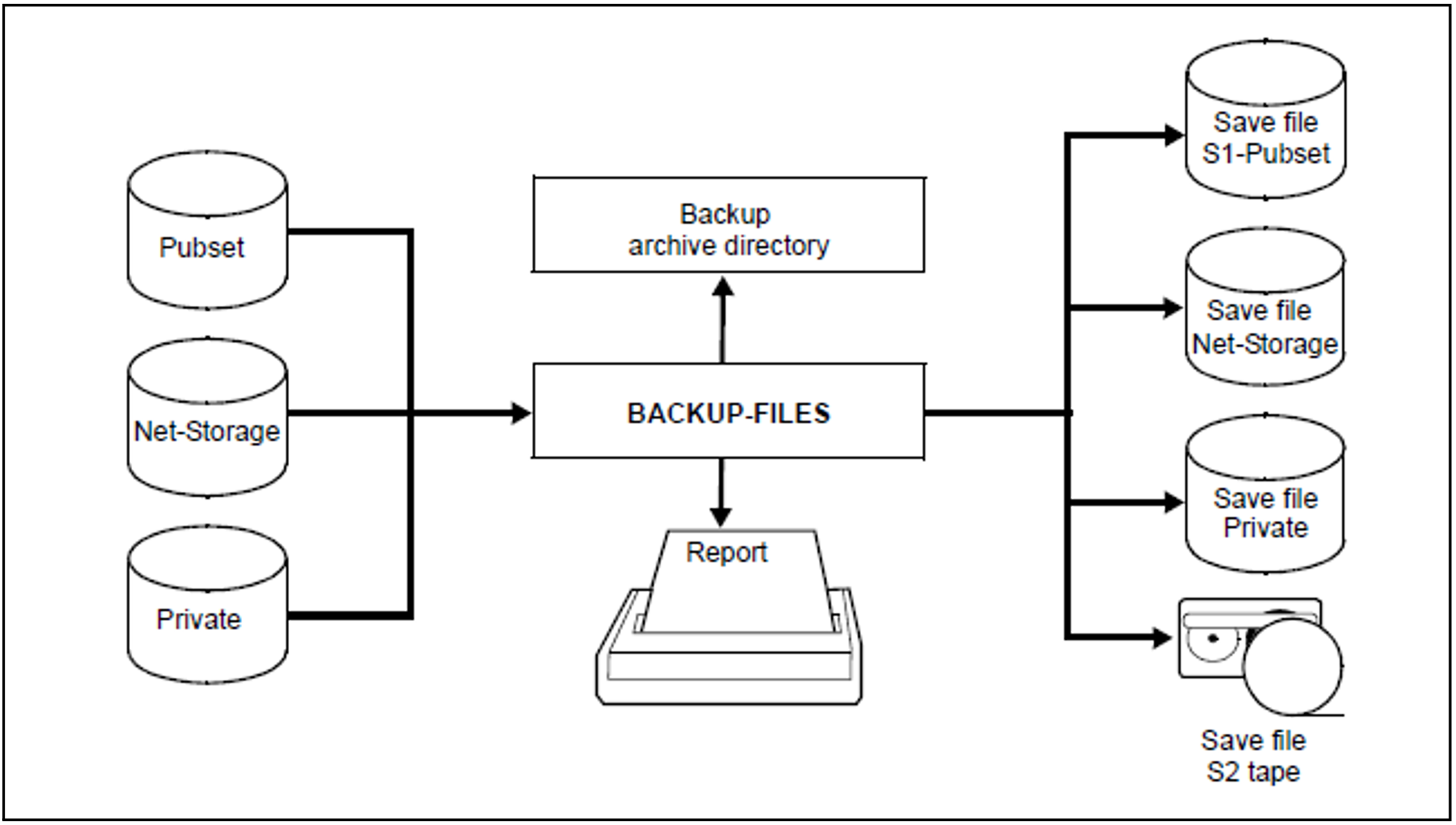 Files and job variables are backed up using the HSMS statement BACKUP-FILES.