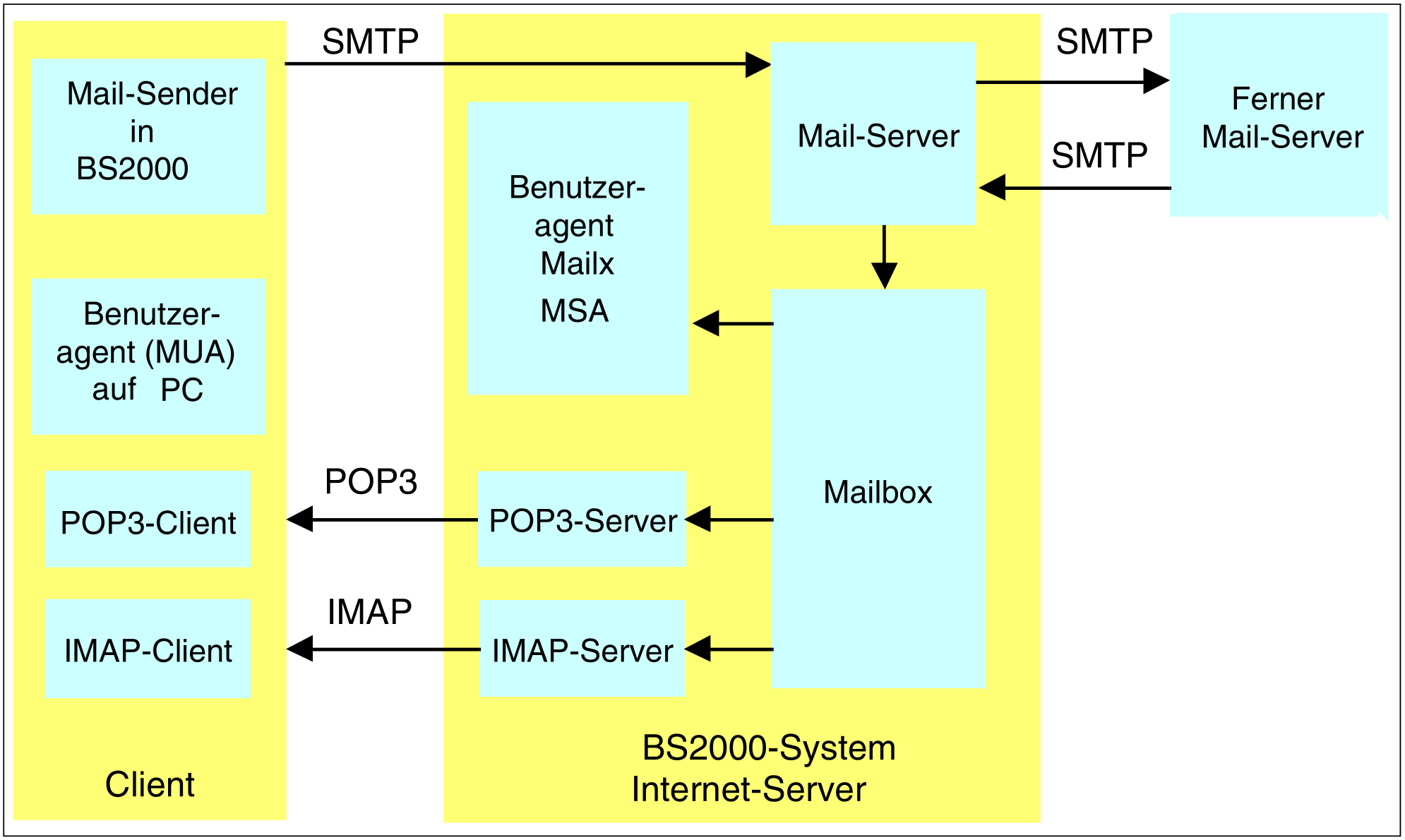 Der IMAP- und POP3- Mechanismus erlaubt einem Client-System, insbesondere wenn dieses nicht mit einem SMTP-Server (MTA) ausgestattet ist, den Zugriff auf die Mailboxen des SMTP-Server-Systems. Hierzu werden auf dem SMTP-Server-System ein IMAP- und ein POP3-Server installiert. Beispielsweise können dann Clients (z.B. Outlook oder Mozilla/Thunderbird), die auf einem fernen System ablaufen, Nachrichten in den Mail-Boxen des Server-Systems lesen und löschen.