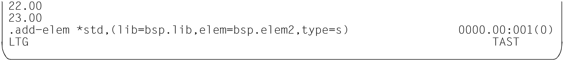 ADD-ELEMENT FROM-FILE=*STD,TO-ELEMENT = ...Die Datensätze werden aus der aktuellen EDT-Arbeitsdatei ins angegebene Element geschrieben.