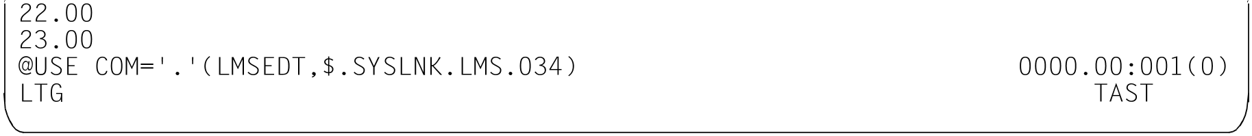 Das über @USE aufgerufene Unterprogramm LMS wird beendet, d.h. alle noch geöffneten Bibliotheken werden geschlosssen. Es erfolgt die Rückkehr in die EDT-Anweisungszeile.